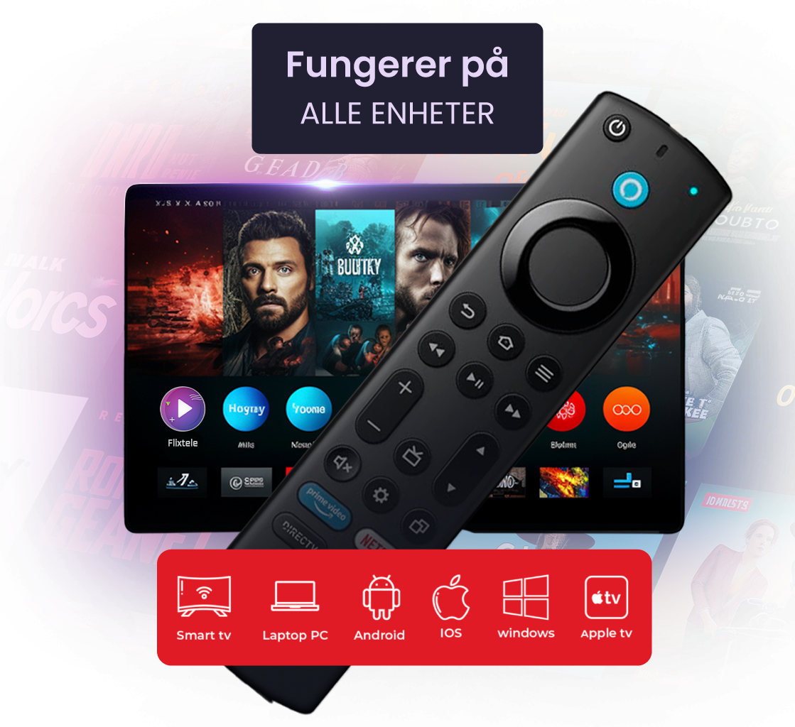 Tjenesten fungerer på Smart TV, Apple TV, Android TV, Firestick, mobil, nettbrett og PC – alt du trenger er internett.